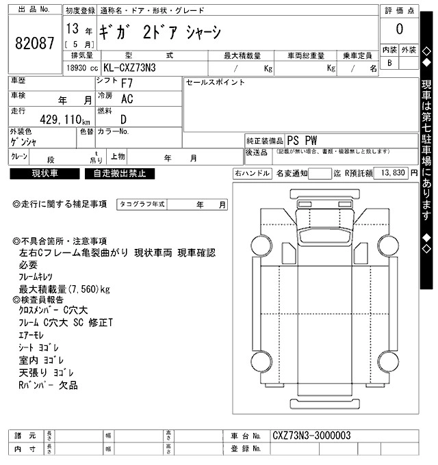 Год выпуска2001 Пробег 429 000 км КузовCXZ73N3 Комплектация CHASSIS