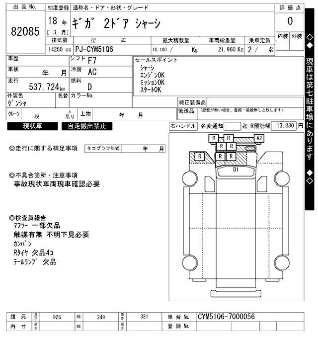 Год выпуска2006 Пробег 538 000 км КузовCYM51Q6 Комплектация CHASSIS
