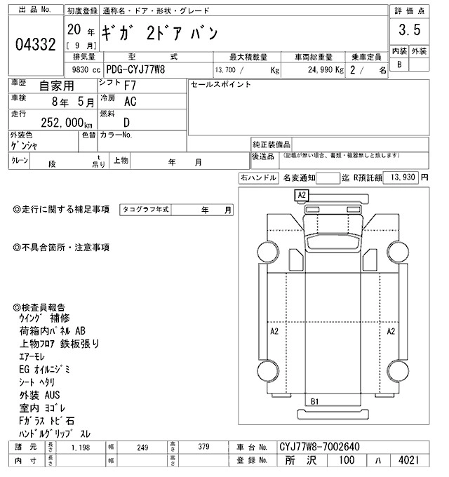 Статус выставлен на аукцион Лот 4332 Аукцион ARAI Oyama VT Дата аукциона 31.01.2026