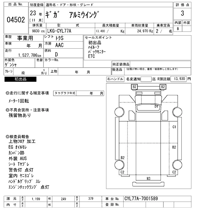 Год выпуска2011 Пробег 1 528 000 км КузовCYL77A Комплектация ALUMINIUM WING