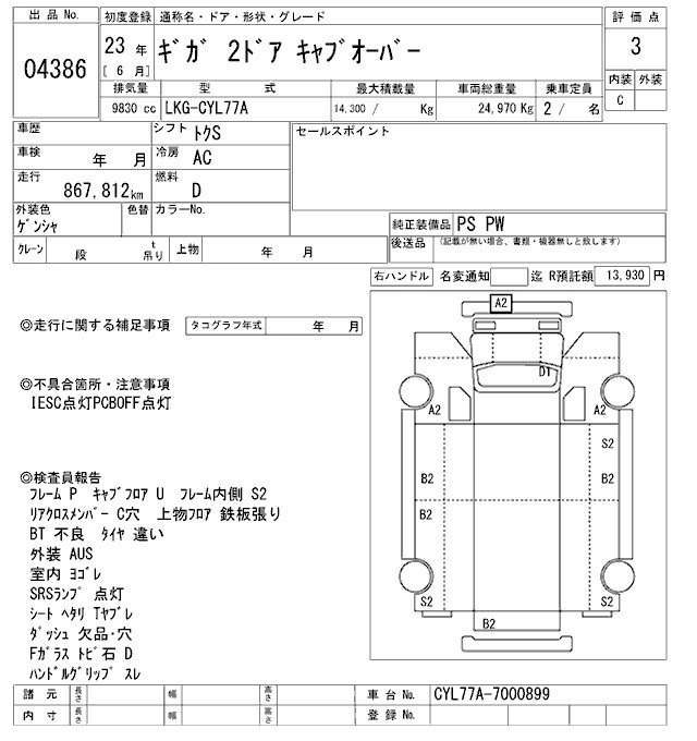 Год выпуска2011 Пробег 868 000 км КузовCYL77A Комплектация COMMON. ALUMINIUM B