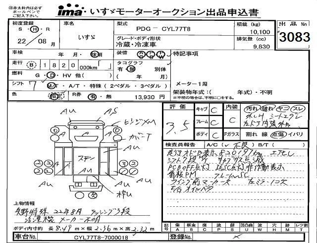 Статус выставлен на аукцион Лот 3083 Аукцион Isuzu Kobe Дата аукциона 30.01.2026