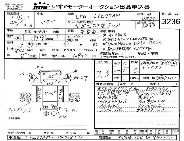 Год выпуска2012 Пробег 299 000 км КузовCYZ77AM Комплектация DUMP