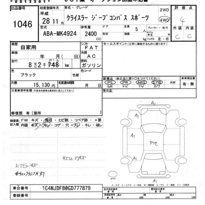 JEEP COMPASS 2016 г., лот № 1046