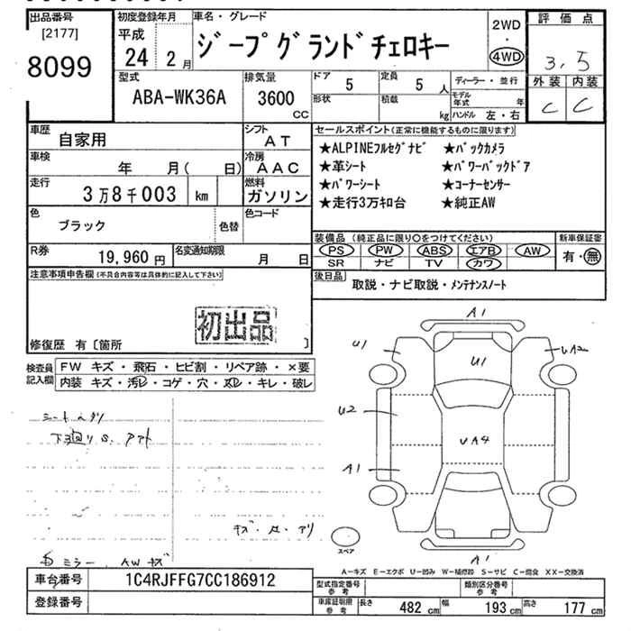 JEEP GRAND CHEROKEE 2012 г., лот № 8099