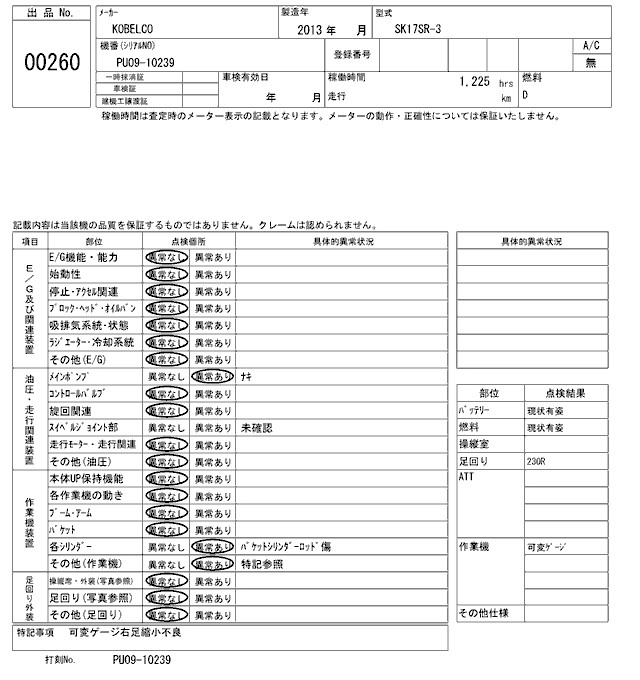 Статус выставлен на аукцион Лот 260 Аукцион ARAI Kenki Дата аукциона 17.03.2026