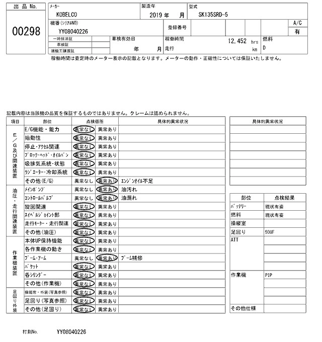 Статус выставлен на аукцион Лот 298 Аукцион ARAI Kenki Дата аукциона 17.03.2026