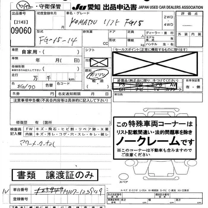Статус выставлен на аукцион Лот 9060 Аукцион JU Aichi Дата аукциона 29.01.2026