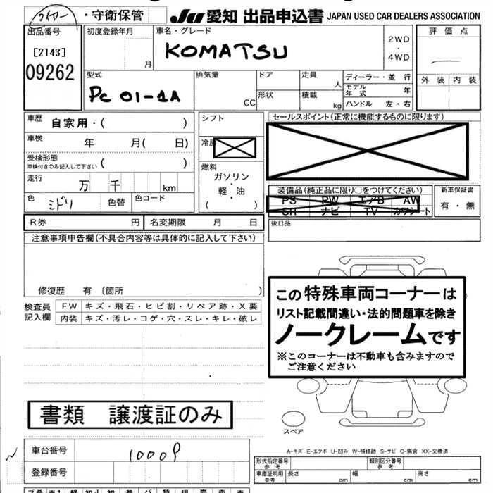 Статус выставлен на аукцион Лот 9262 Аукцион JU Aichi Дата аукциона 29.01.2026
