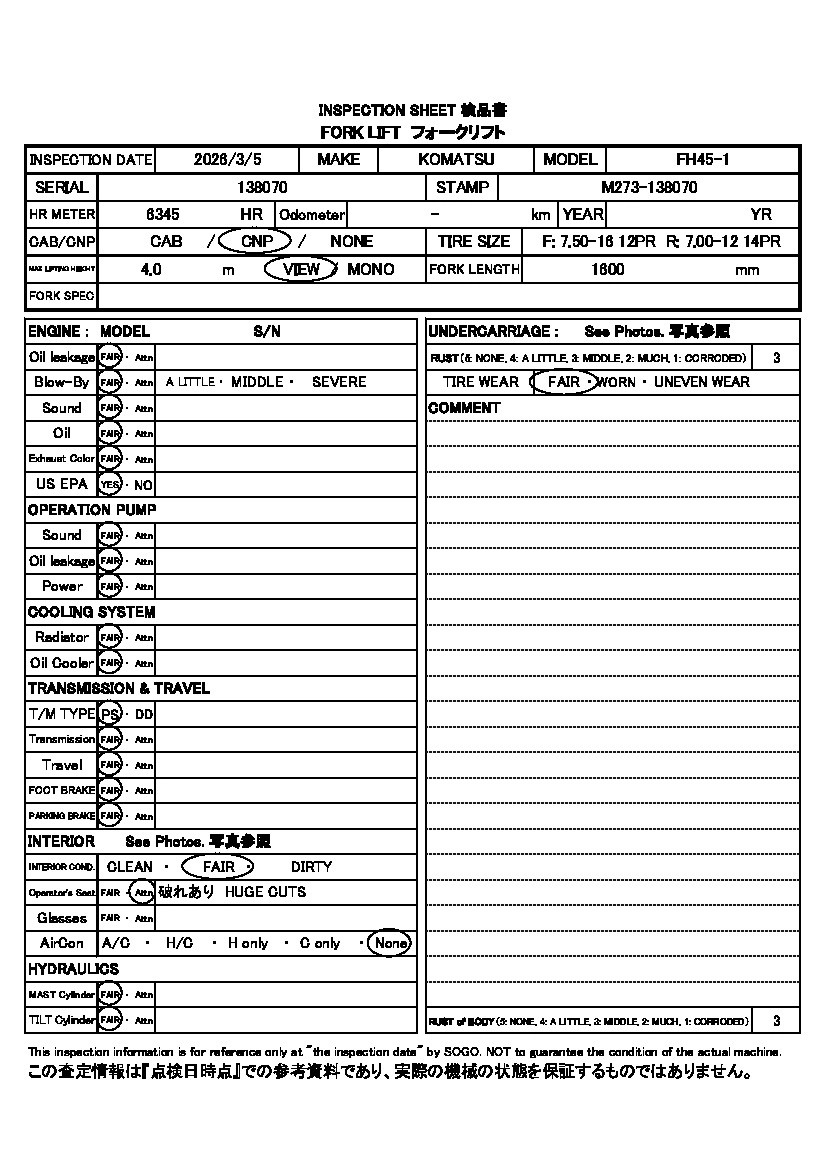 Год выпуска2013 КузовFH45-1 Комплектация FORKLIFT