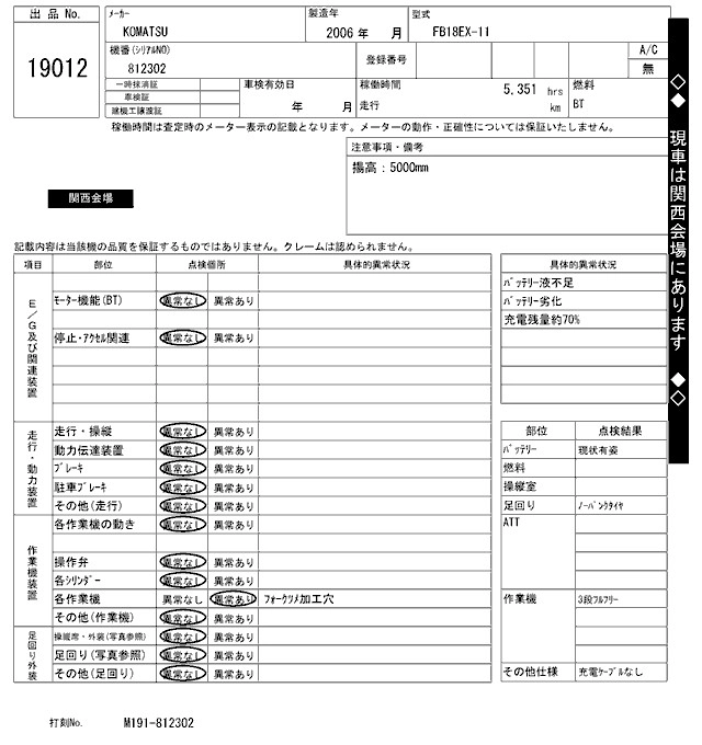 Статус выставлен на аукцион Лот 19012 Аукцион ARAI Kenki Дата аукциона 17.03.2026