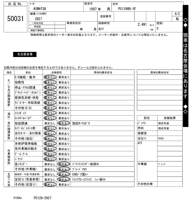 Статус выставлен на аукцион Лот 50031 Аукцион ARAI Kenki Дата аукциона 17.03.2026
