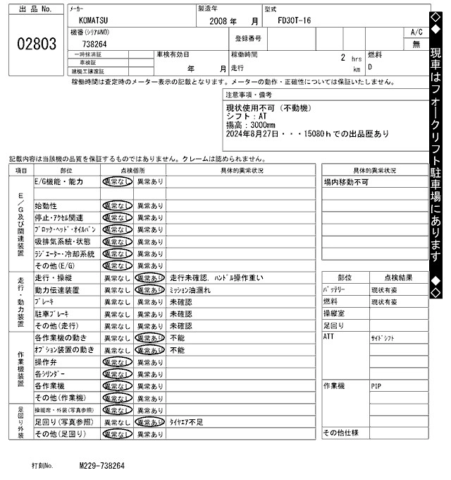 Статус выставлен на аукцион Лот 2803 Аукцион ARAI Kenki Дата аукциона 17.03.2026