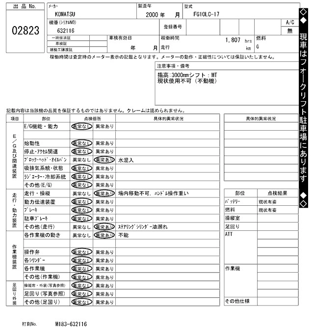 Год выпуска2000 Пробег 2 000 км КузовFG10LC-17 Комплектация FORKLIFT