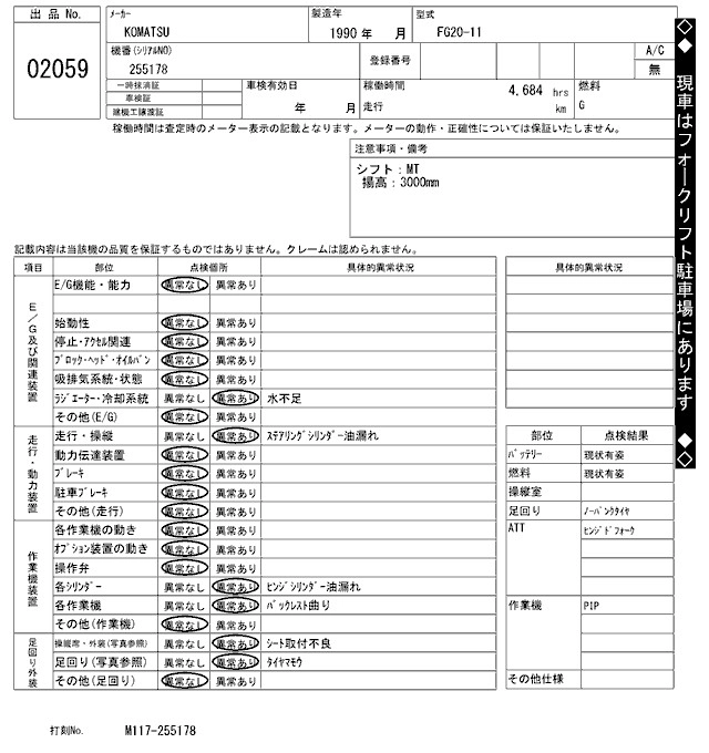 KOMATSU OTHER 1990 г., лот № 2059