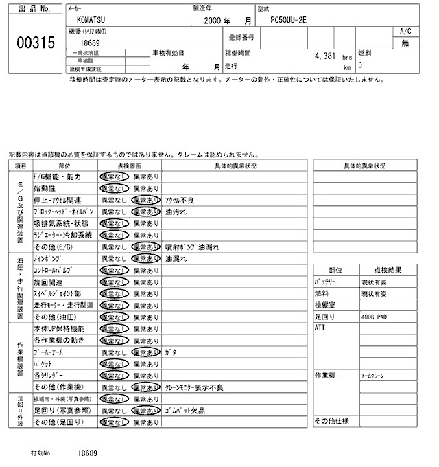 KOMATSU OTHER 2000 г., лот № 315
