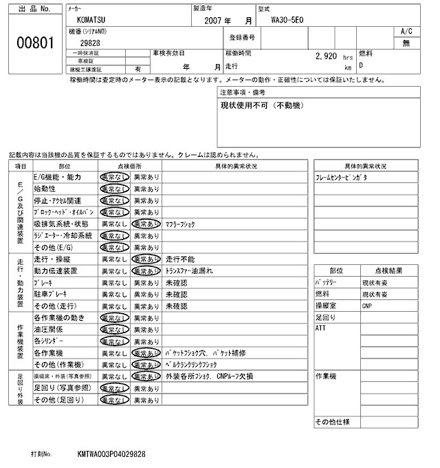 KOMATSU OTHER 2007 г., лот № 801