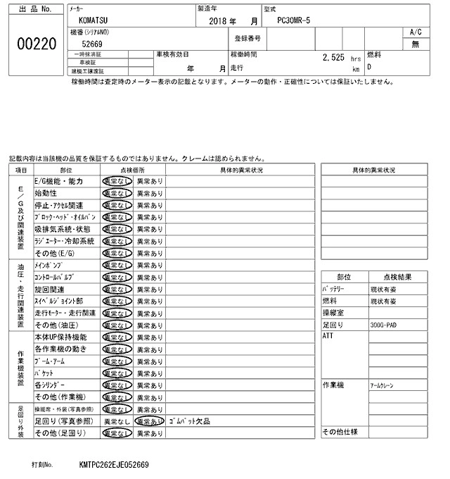 Статус выставлен на аукцион Лот 220 Аукцион ARAI Kenki Дата аукциона 17.03.2026