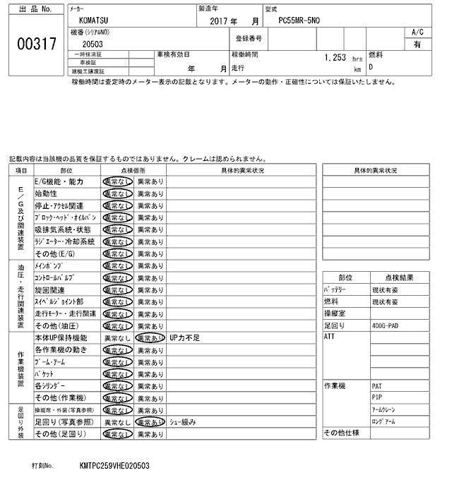 KOMATSU OTHER 2017 г., лот № 317