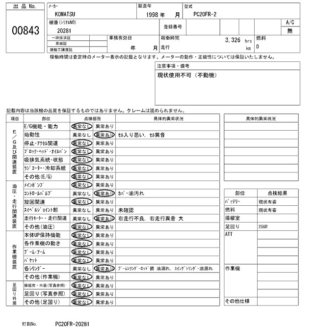 Статус выставлен на аукцион Лот 843 Аукцион ARAI Kenki Дата аукциона 17.03.2026