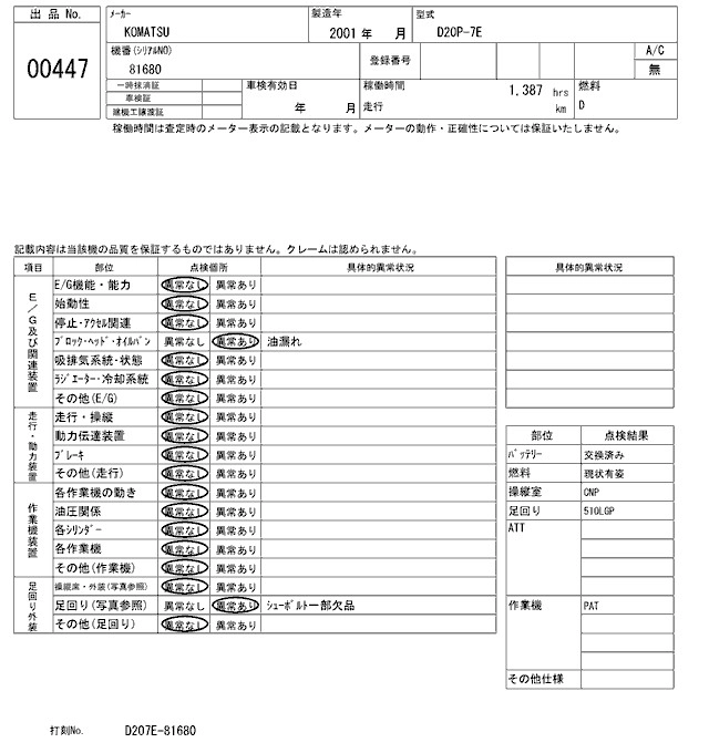 KOMATSU OTHER 2001 г., лот № 447