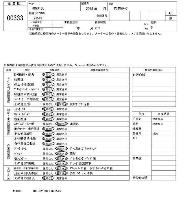 KOMATSU OTHER 2015 г., лот № 333