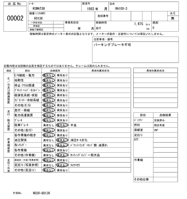 Год выпуска1993 Пробег 2 000 км КузовWA100-3 Комплектация WHEEL LOADER -