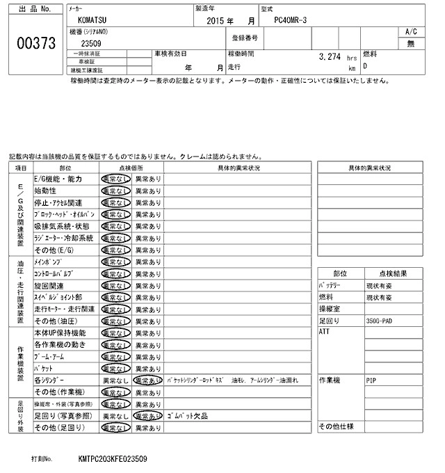 Статус выставлен на аукцион Лот 373 Аукцион ARAI Kenki Дата аукциона 17.03.2026