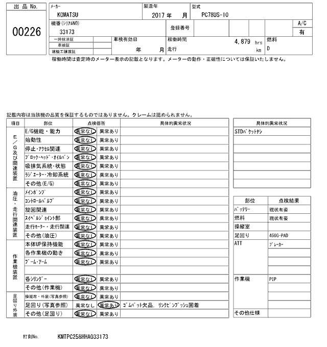 Статус выставлен на аукцион Лот 226 Аукцион ARAI Kenki Дата аукциона 17.03.2026