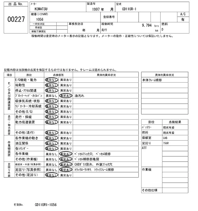 Статус выставлен на аукцион Лот 227 Аукцион ARAI Kenki Дата аукциона 17.03.2026