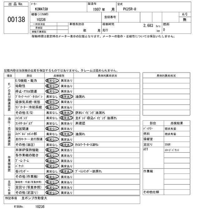 Статус выставлен на аукцион Лот 138 Аукцион ARAI Kenki Дата аукциона 17.03.2026