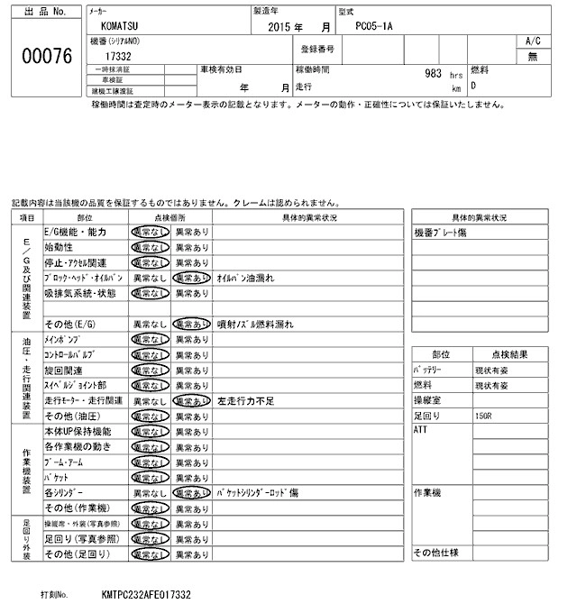 KOMATSU OTHER 2015 г., лот № 76