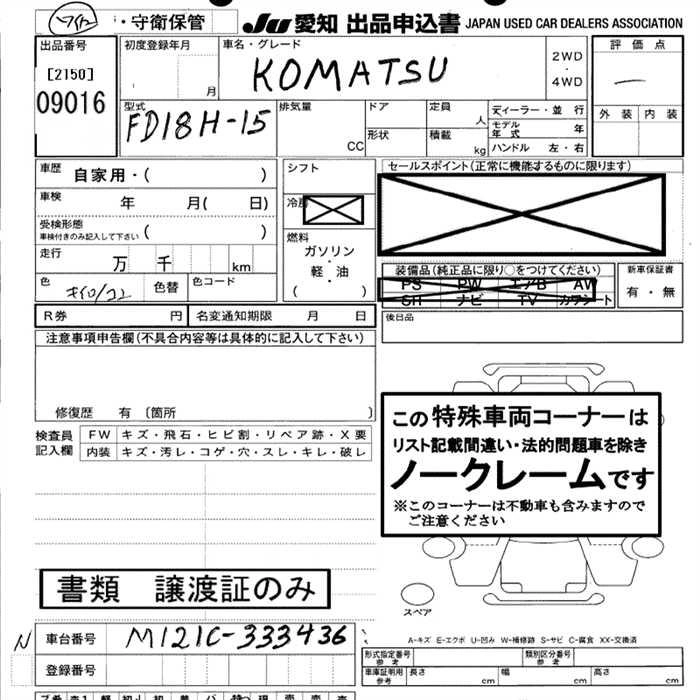 Статус выставлен на аукцион Лот 9016 Аукцион JU Aichi Дата аукциона 19.03.2026