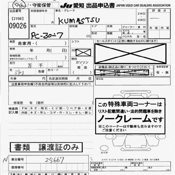 Статус выставлен на аукцион Лот 9026 Аукцион JU Aichi Дата аукциона 19.03.2026