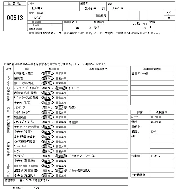 Статус выставлен на аукцион Лот 513 Аукцион ARAI Kenki Дата аукциона 17.03.2026