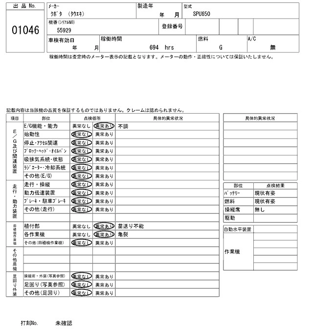 Статус выставлен на аукцион Лот 1046 Аукцион ARAI Kenki Дата аукциона 17.03.2026
