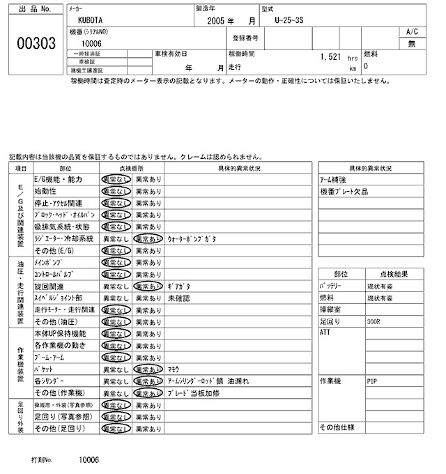 KUBOTA KUBOTA 2005 г., лот № 303