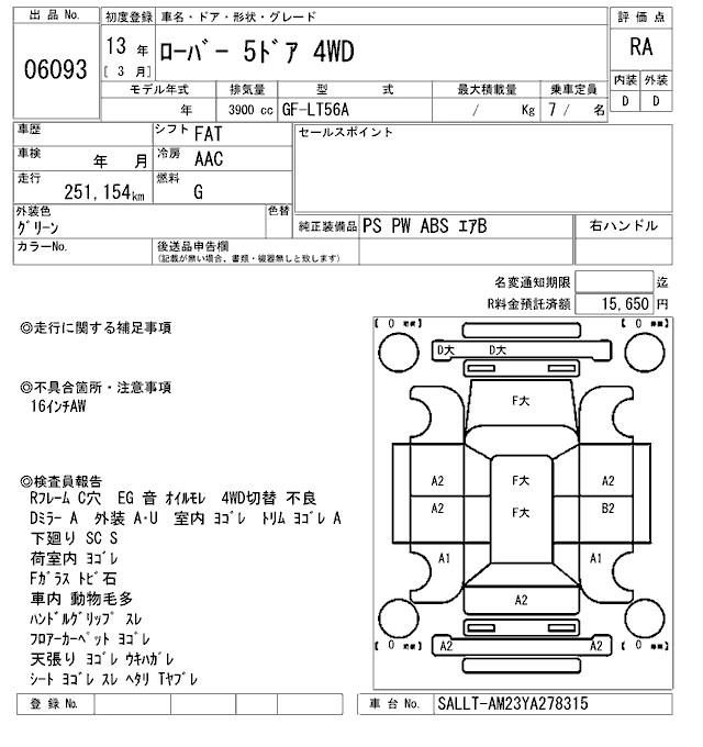 | V8i S | GF-LT56 | ---- | Full-time 4WD | 4AT | 3947cc | 185ps(136kW)/4750rpm | AИ-95 | 3 950 000 |