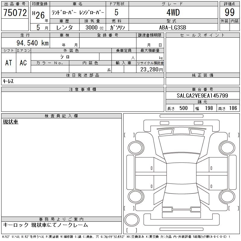 | 5.0 V8 SUPERCHARGED VOGUE | ABA-LG5SA | 508PS | Full-time 4WD | 8AT | 4999cc | 510ps(375kW)/6500rpm | AИ-95 | 15 330 000 | |