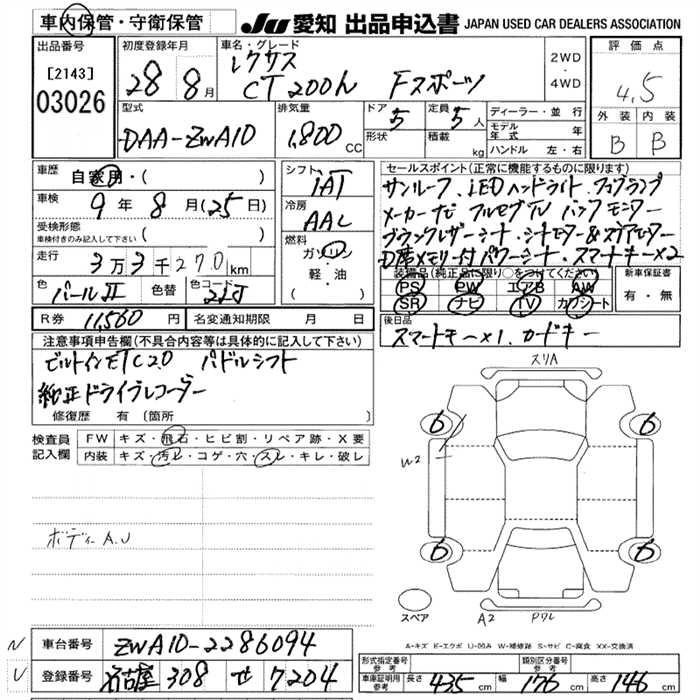 Статус выставлен на аукцион Лот 3026 Аукцион JU Aichi Дата аукциона 29.01.2026