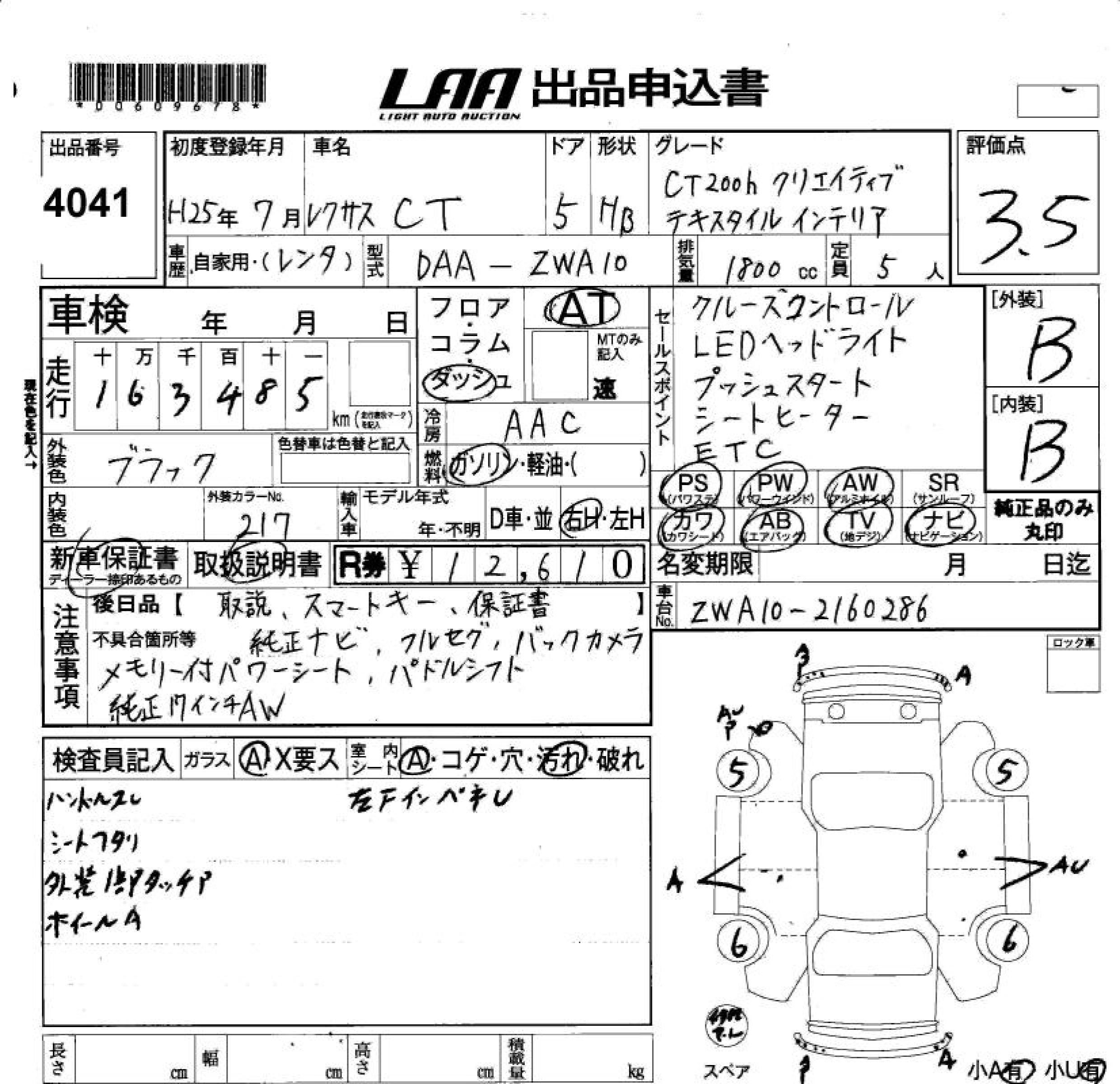 LEXUS CT 2013 г., лот № 4041