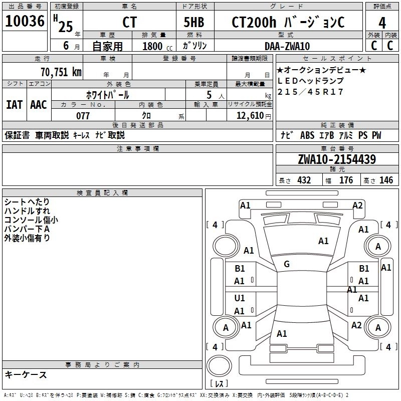 Год выпуска2013 Пробег 71 000 км КузовZWA10 КомплектацияCT200H VERSION C