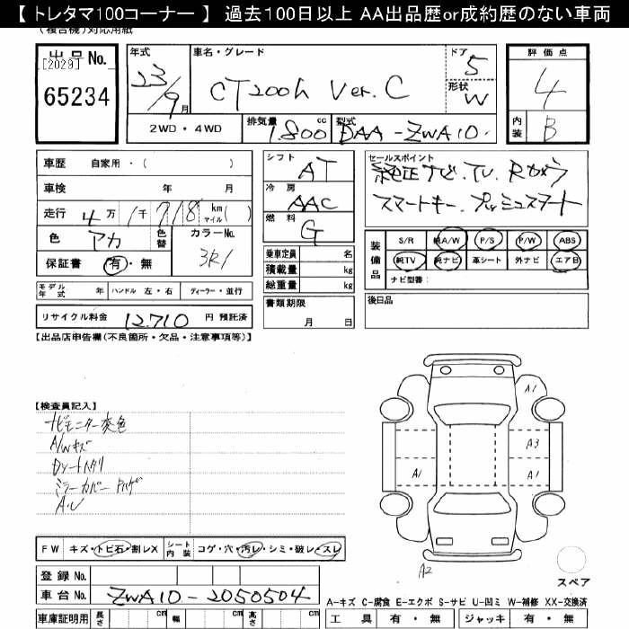 LEXUS CT 2011 г., лот № 65234
