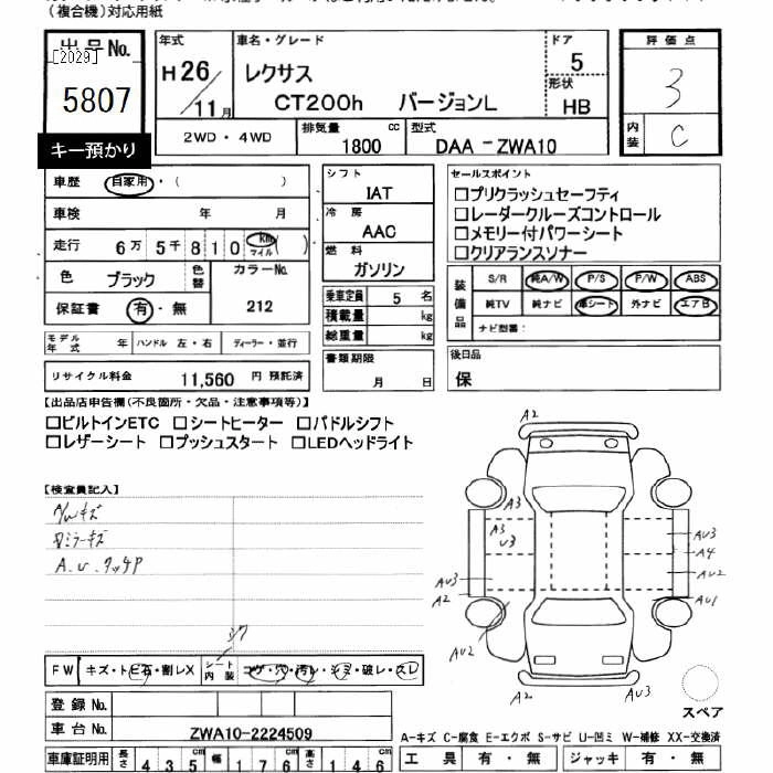 LEXUS CT 2014 г., лот № 5807