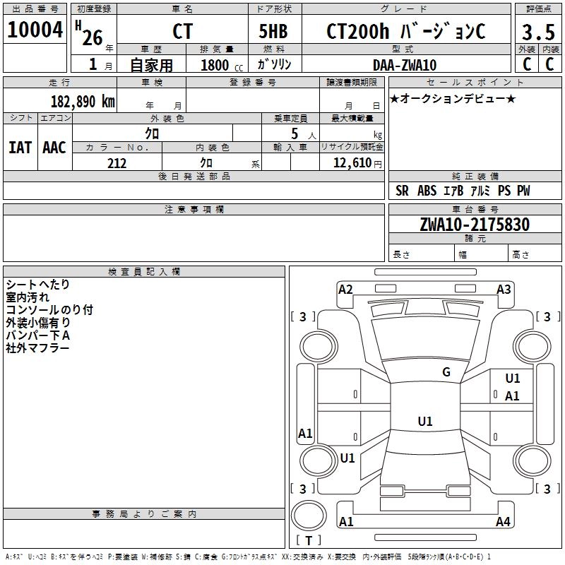 LEXUS CT 2014 г., лот № 10004