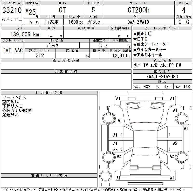LEXUS CT 2013 г., лот № 33210
