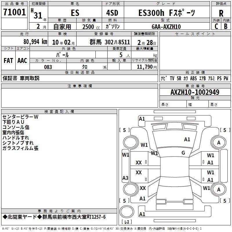 LEXUS ES 2019 г., лот № 71001