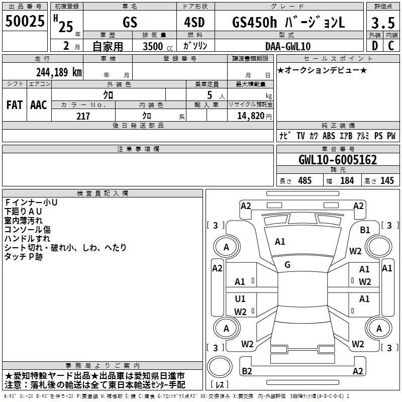 LEXUS GS 2013 г., лот № 50025