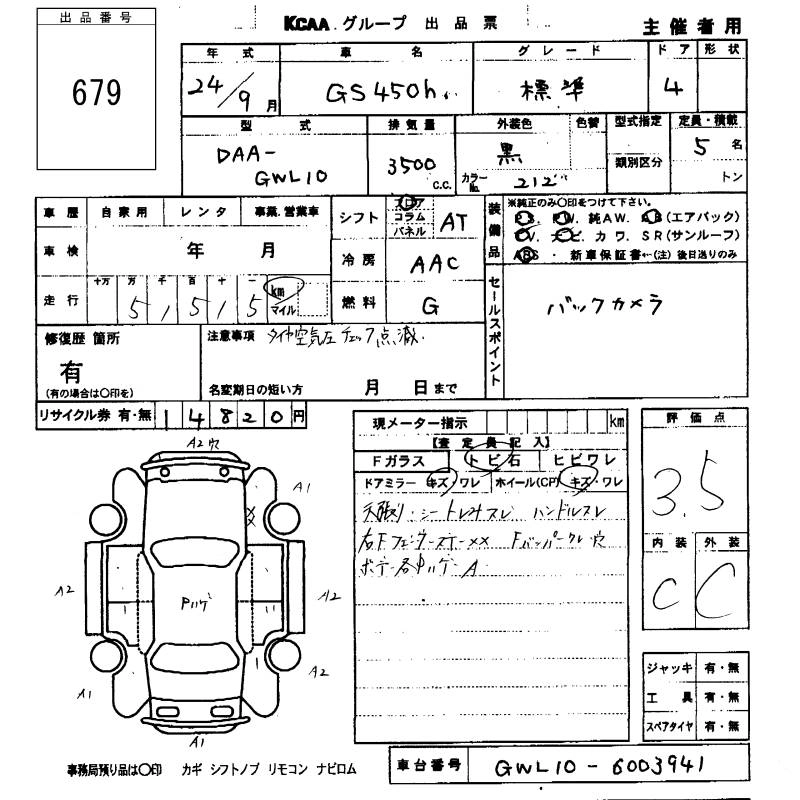 LEXUS GS 2012 г., лот № 679
