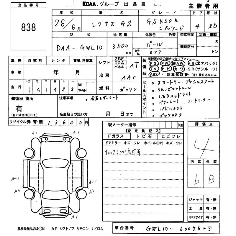 LEXUS GS 2014 г., лот № 838
